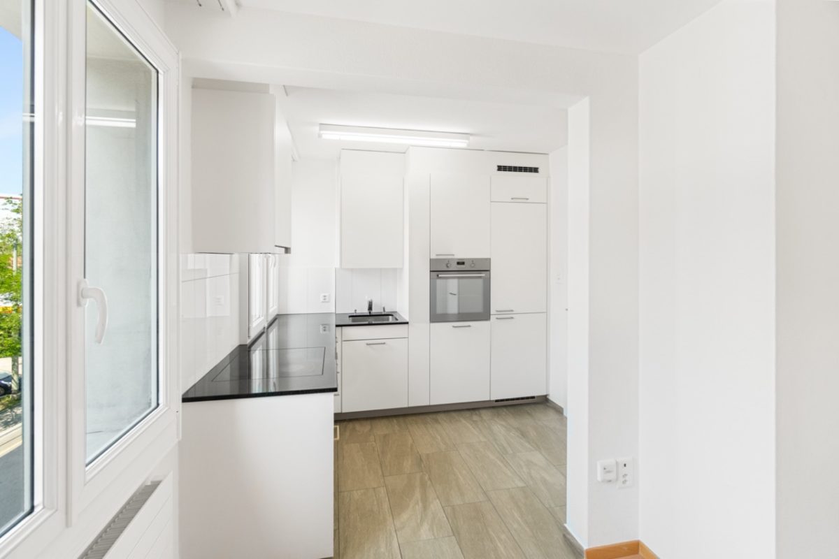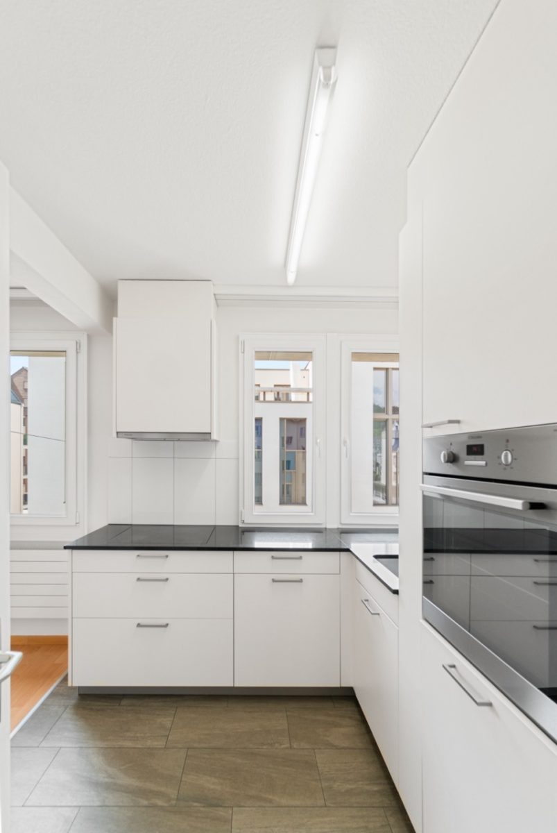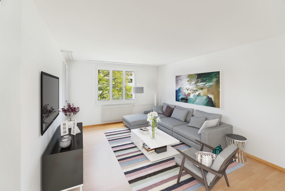 Diese gepflegte 4-Zimmer-Wohnung befindet sich im 2. Obergeschoss eines ruhigen 8-Parteien-Mehrfamilienhauses, nur rund 6 Autofahrminuten vom Stadtzentrum entfernt. Dank der sehr guten Anbindung an den öffentlichen Verkehr sowie der nahegelegenen Infrastruktur erreichen Sie Einkaufsmöglichkeiten und das Zentrum bequem und unkompliziert.